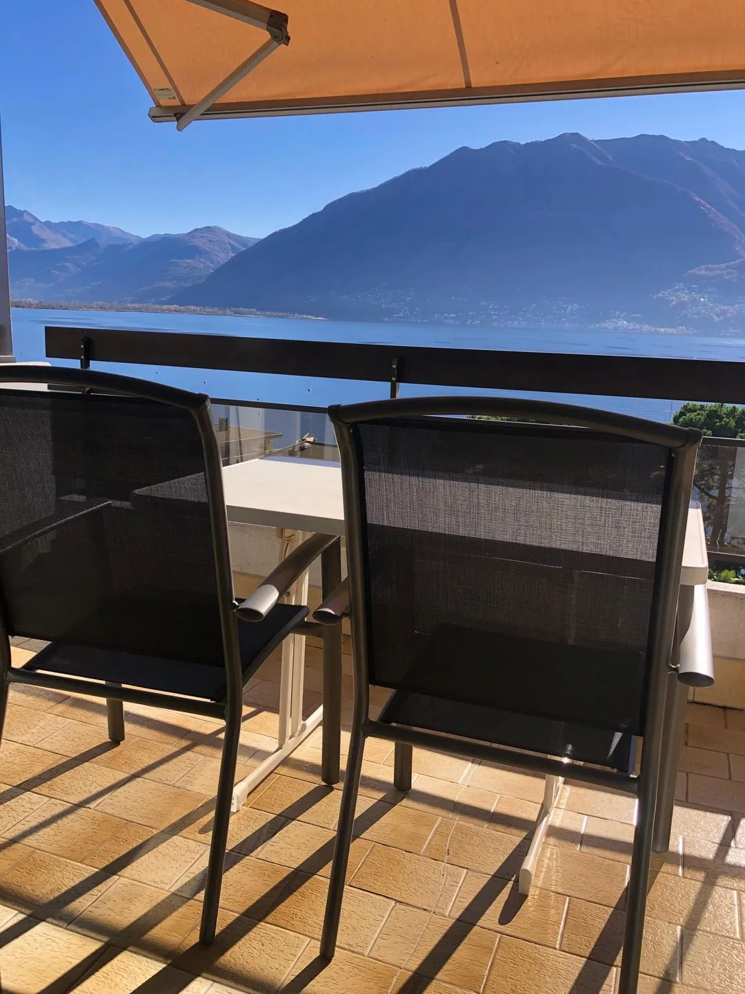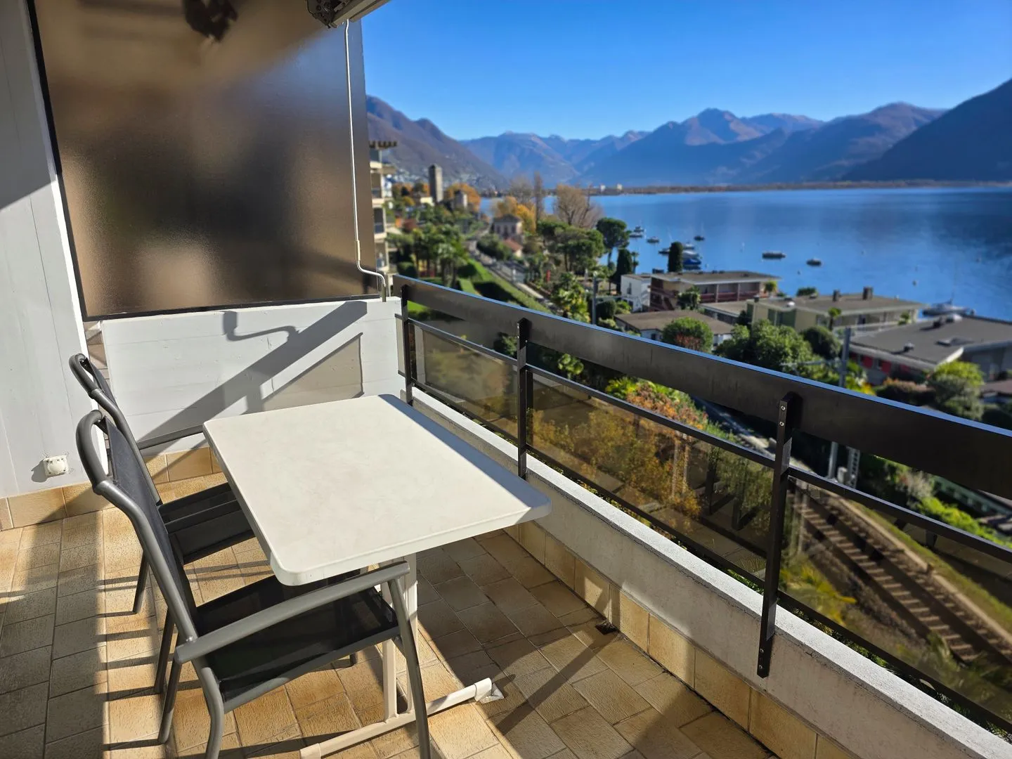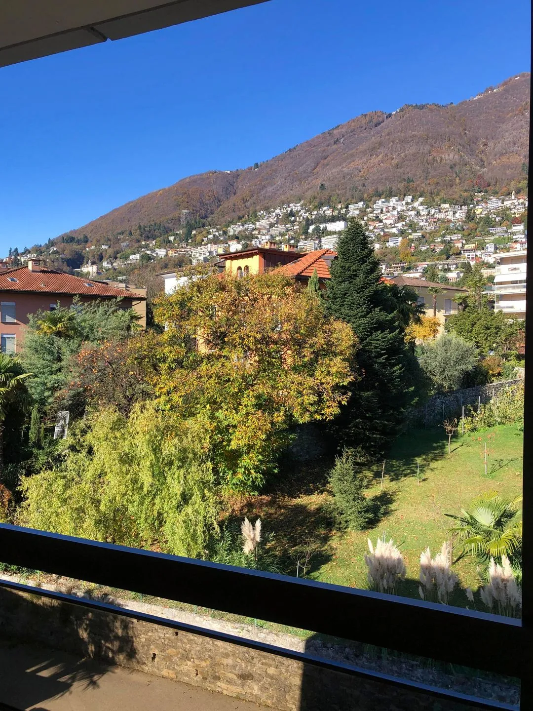 Tolle Lage mit wunderschöner Aussicht auf den Lago Maggiore, reservierter Parkplatz. In wenigen Minuten zu Fuß nach Locarno, zwei gut sortierte Supermärkte in der Nähe.