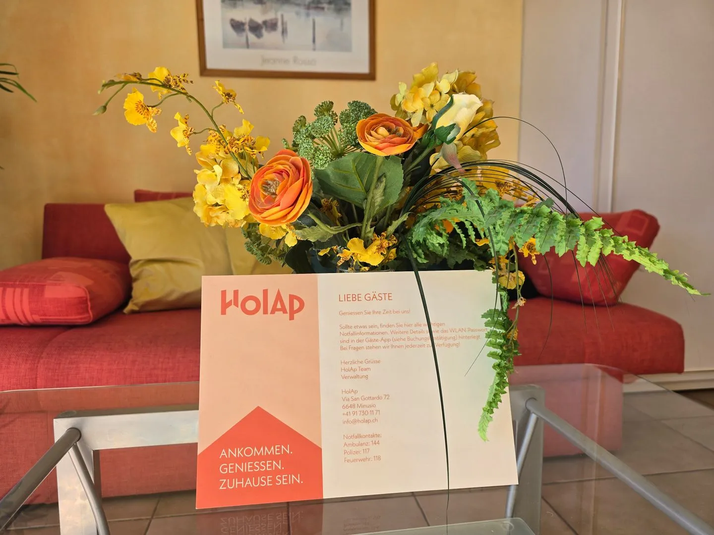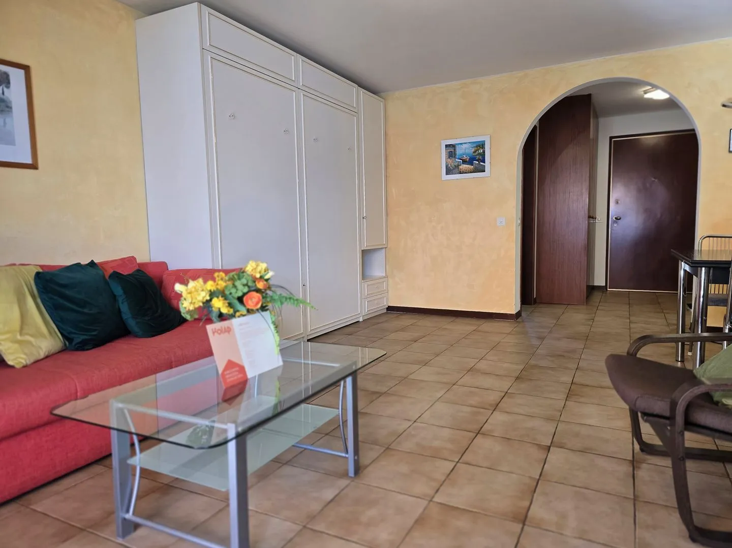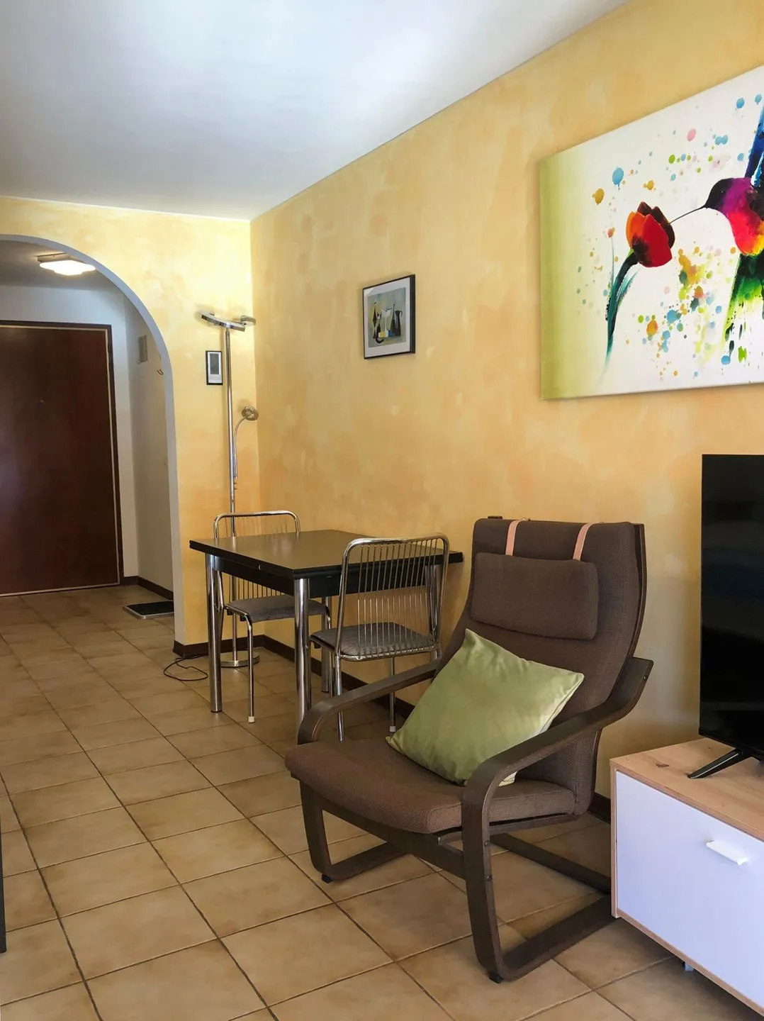 Muralto borders with Locarno. The flat house lies nearby the beautiful promenade at sunny south position with lovely panoramic view on the lake and the surrounding mountains. The flat is in the last floor. Between the promenade and the house the train line entrance into the railway station Locarno. Driveway until house. Private parking. Elevator. Furnished balcony. Lake promenade ca. 300 ms, railway station, shops ca. 700 ms. Bed, kitchen linen available. Washing machine for common use. 1 pet permited.