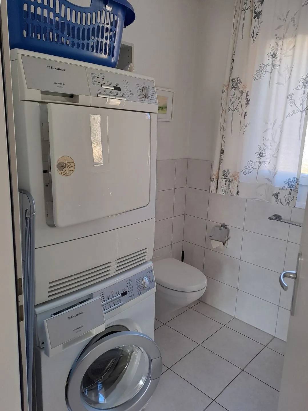 Comfort is ensured in all seasons, with oil-based central heating and underfloor heating throughout the apartment. A fan and air conditioning (in the living room) provide further climatic comfort during the warmer months. For your practical needs, a washing machine, dryer, ironing board, iron, clothes rack, vacuum cleaner, and cleaning utensils are included.