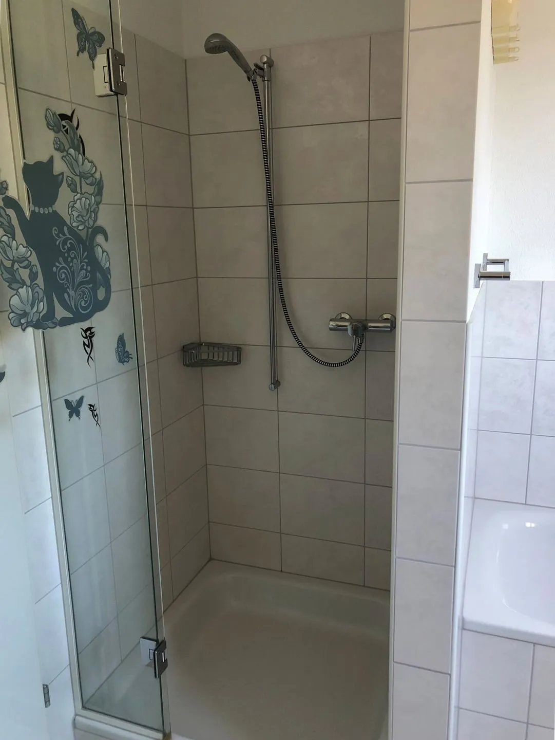 Das Badezimmer ist mit einer bodengleichen Dusche, einer Badewanne, einem WC sowie einem Spiegel und Fenster ausgestattet. Außerdem steht ein separates Gäste-WC zur Verfügung. Für Familien mit Kleinkindern sind ein Babybett und ein Hochstuhl vorhanden – Babys und Kinder sind ausdrücklich willkommen. Komfortable Bettwäsche, Hand- und Badetücher werden bereitgestellt.